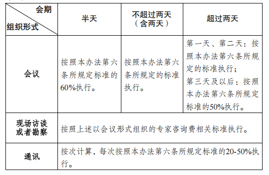 第八条 采取信函、电子邮件等通讯方式开展的非现场评审工作,专家劳务费原则上按次计算,每次按本办法第六条相关标准的20%—50%执行。”