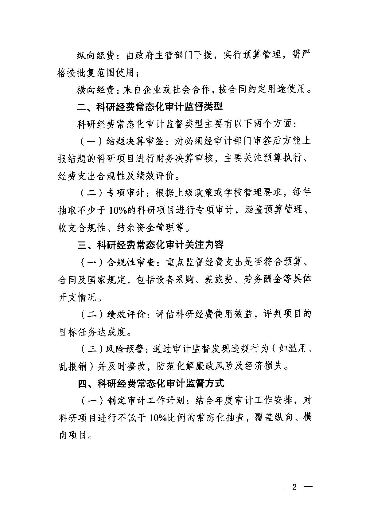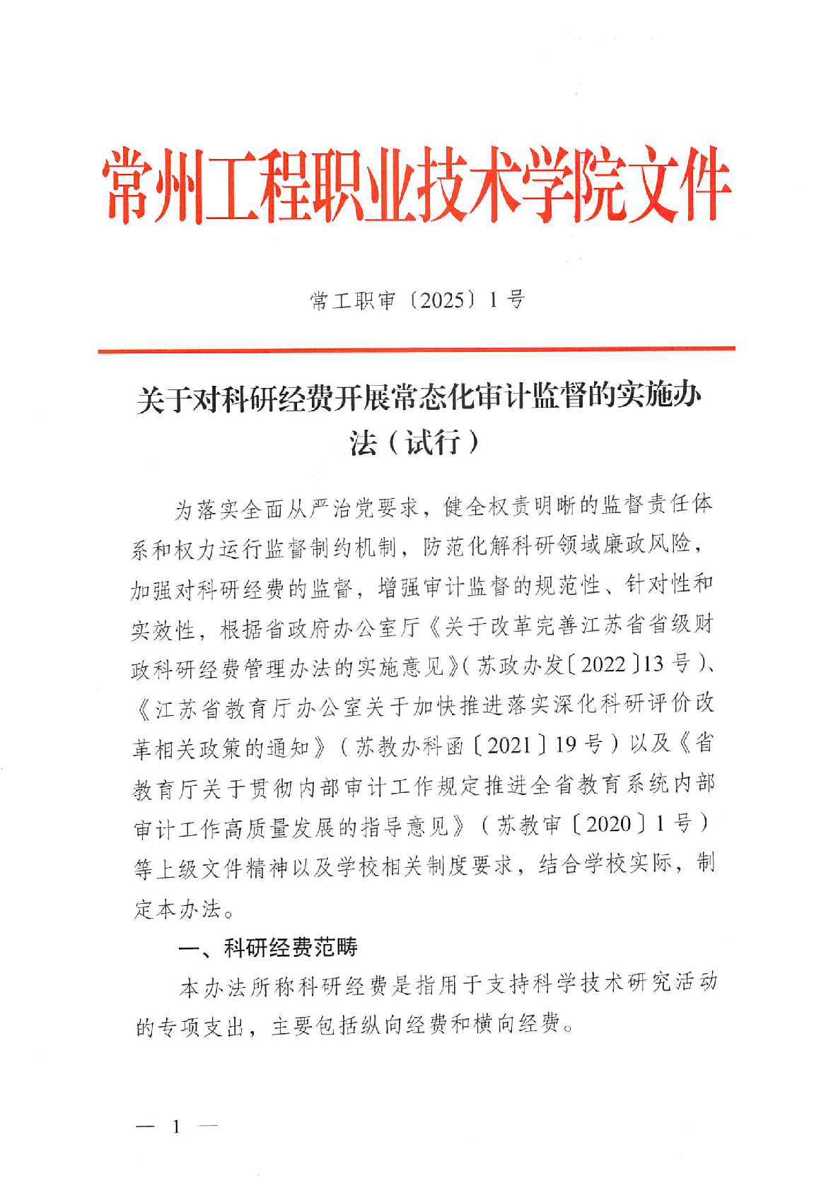 关于对科研经费开展常态化审计监督的实施办法(试行)常工职审〔2025〕1号